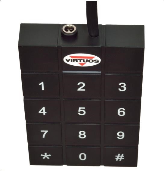 RFID 125 kHz adaptér Virtuos® je určen k otvírání pokladních zásuvek Virtuos pomocí RFID karet nebo zadáním PIN na klávesnici bez nutnosti použití pokladního systému. Adaptér dále může hlídat nezavřenou zásuvku a upozornit na tuto skutečnost spuštěním alarmu.