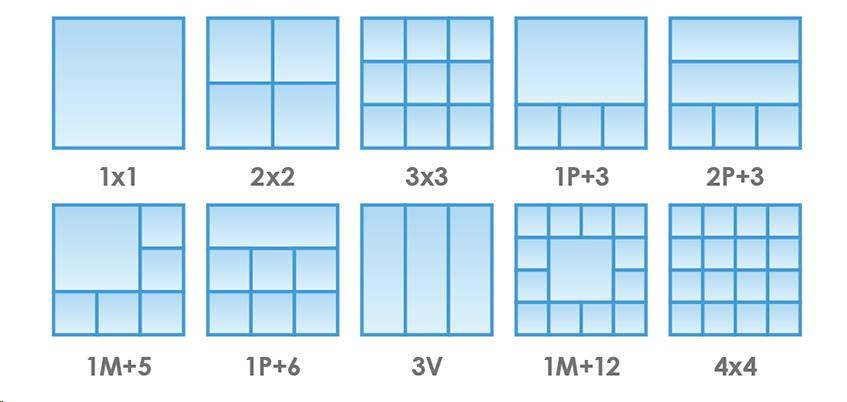 monitorovací zařízení pro zobrazení až 32 kamer (až 20Mpix kamera), 4K video výstup HDMI, H.265, dekódovací kapacita 3840x2160@90fps (3-CH) nebo 1920x1080@360fps (12-CH), USB