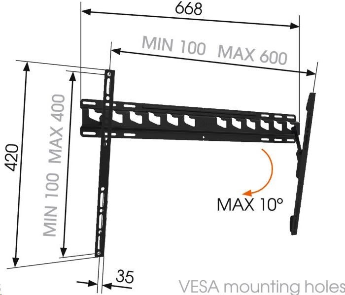 Další vlastnosti:- vzdálenost TV od stěny 35 mm