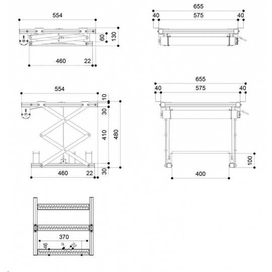 - Rozměry uzavřeného výtahu 575 x 130 x 554 mm (š x v x h)