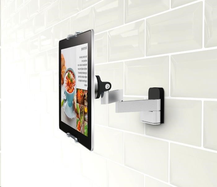 Tablet je velmi užitečným pomocníkem i v kuchyni nejen pro vytváření hudební kulisy, ale i jako pomocná ruka při přípravě vašich kulinářských kreací. Pro jeho maximální užití navrhli ve Vogel's pohyblivý držák poskytující spolehlivé a flexibilní uchycení na stěnu. Nezabírá místo na pracovní desce a drží tablet v bezpečné vzdálenosti od stříkanců.
