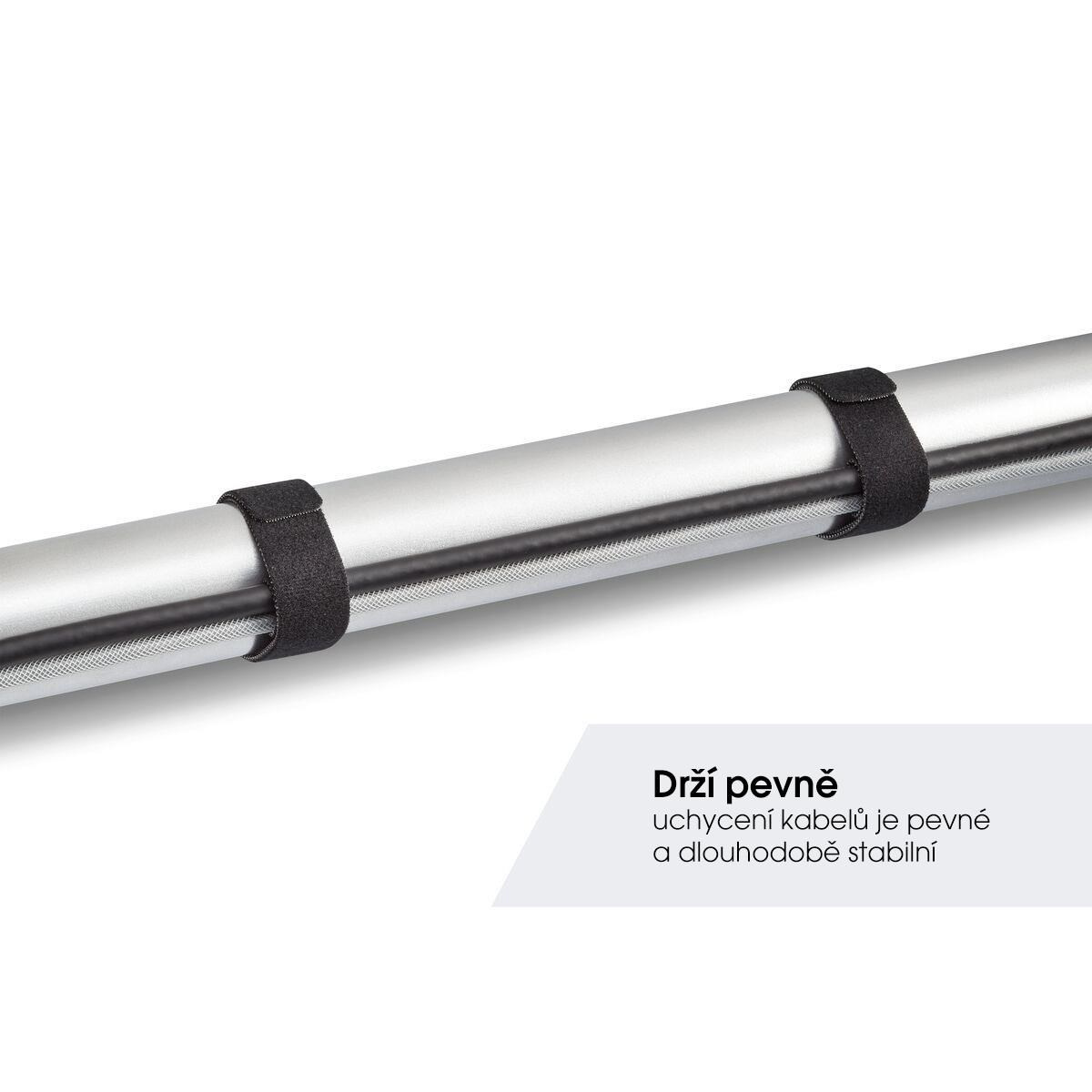 V ideálním případě byste měli kabely svázat dohromady a vést je skrytě před zraky. Společnost Vogel's k tomu nabízí řadu praktických řešení. Pomocí těchto stahovacích pásků se suchým zipem můžete kabely svázat pevně a bezpečně dohromady. Sada stahovacích pásků TVA 6201 se skládá ze šesti stahovacích pásků o délce 30 cm a šířce 2 cm.