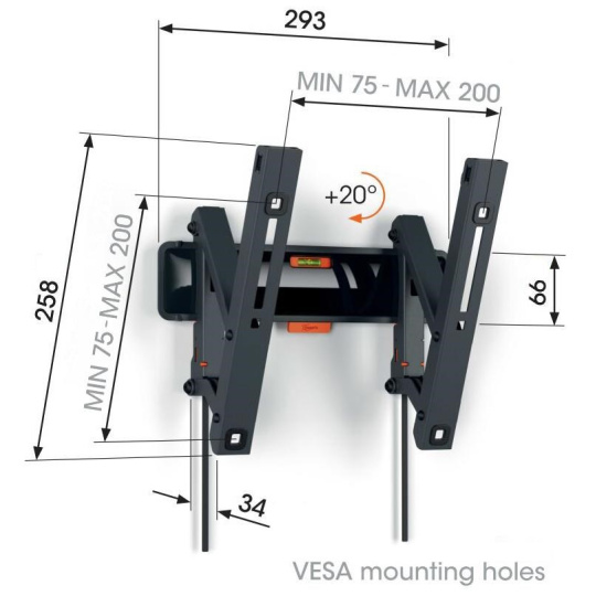 S nástěnným držákem TVM 3213 řady COMFORT Tilt volíte styl, bezpečnost a příjemný zážitek ze sledování. Nástěnný držák je ideální pro případy, kdy je televizor umístěn na stěně o něco výše, například v ložnici. Můžete jej naklonit až o 20° a vytvořit si tak ideální pozorovací úhel. Nástěnný držák je vhodný pro televizory s úhlopříčkou od 19 do 43 palců a hmotností do 15 kg. Televizor si skutečně užijete, teprve když jste si jisti, že je pěkně a bezpečně namontován. Stylový držák TVM 3213 vám tuto jistotu poskytne. Nástěnný držák je navržen a vyroben pro dlouholeté intenzivní používání.