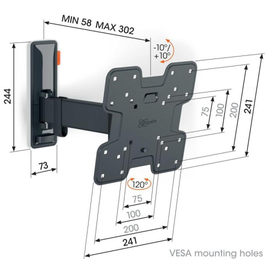 TV 19-43", natáčení 120°, náklon 20°, hloubka 58-302 mm, VESA do 200x200, 15 kg.... více