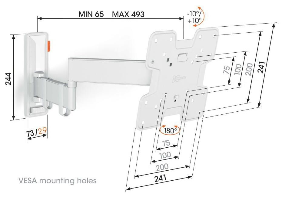 - Otočte televizor až o 180° díky 49 cm dlouhým ramenům