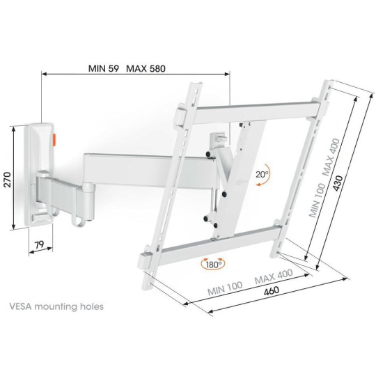 • Otočte televizor až o 180° díky 58 cm dlouhým ramenům