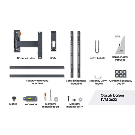 Rameno TVM 3623 se vyznačuje plynulým ovládáním. Pomocí funkce One-Finger™ Movement můžete TV přesunout do jakékoli požadované polohy pouhým jedním prstem. Díky speciálním ložiskům se nástěnný držák pohybuje velmi hladce a lehce. Držák je vybaven jedinečným systémem TiltAnchor™. Tento systém zajišťuje bezpečné naklápění a fixaci polohy vašeho cenného televizoru.