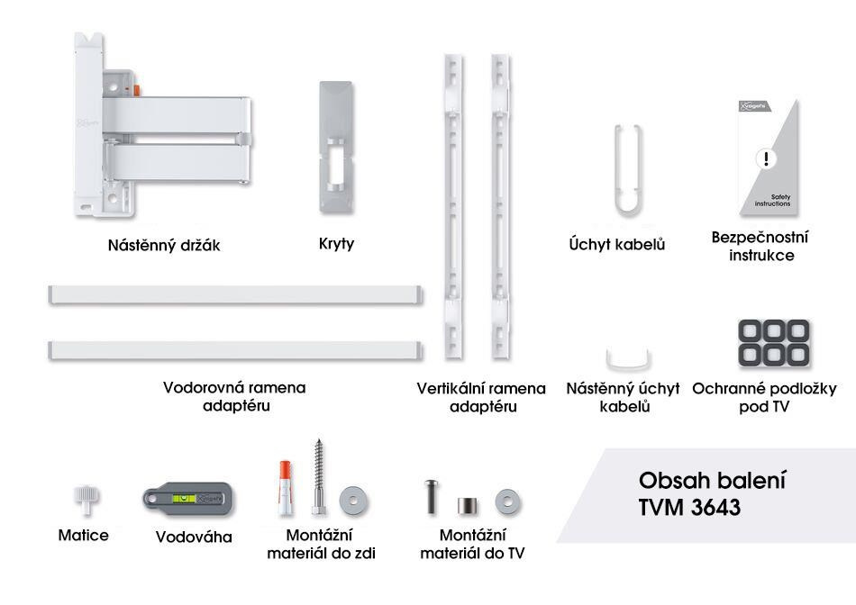 • Součástí balení jsou klipy na uchycení kabelů - ideální vedení kabelů od televizoru ke stěně