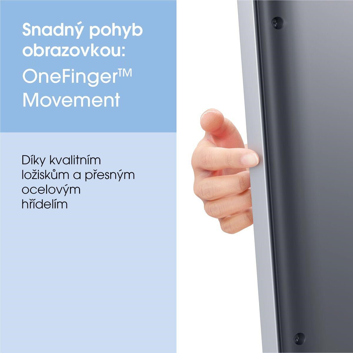- Hladký pohyb OneFinger™ - díky teflonem potaženým ložiskům a přesným ocelovým hřídelím