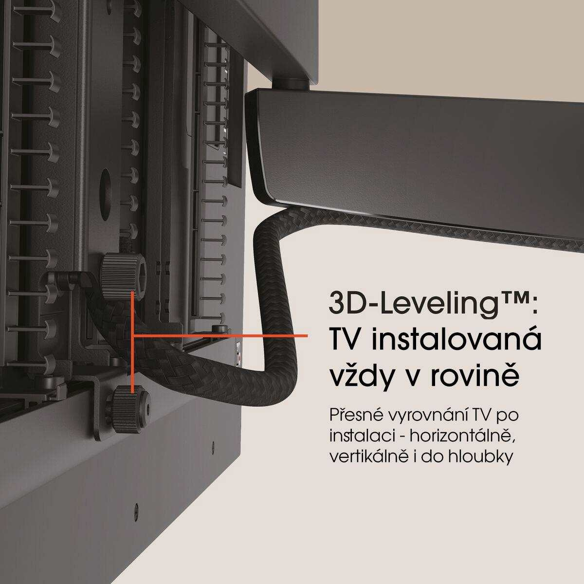 - 3D-LevelingTM - přesné vyrovnání televizoru po instalaci, a to i na šikmých stěnách
