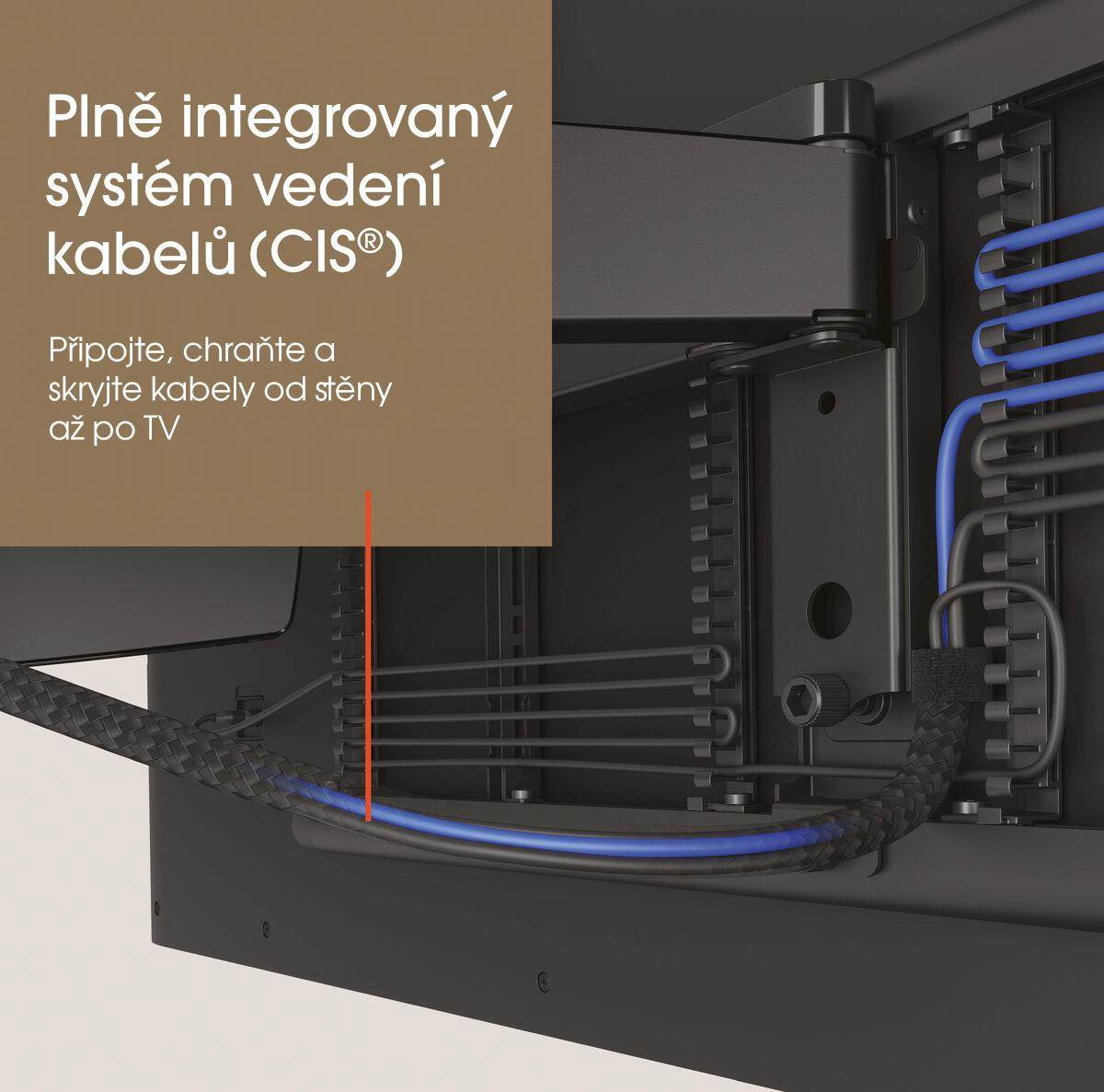 - Plně integrovaný systém vedení kabelů (CIS®) - Připojte, chraňte a skryjte kabely od stěny až po TV