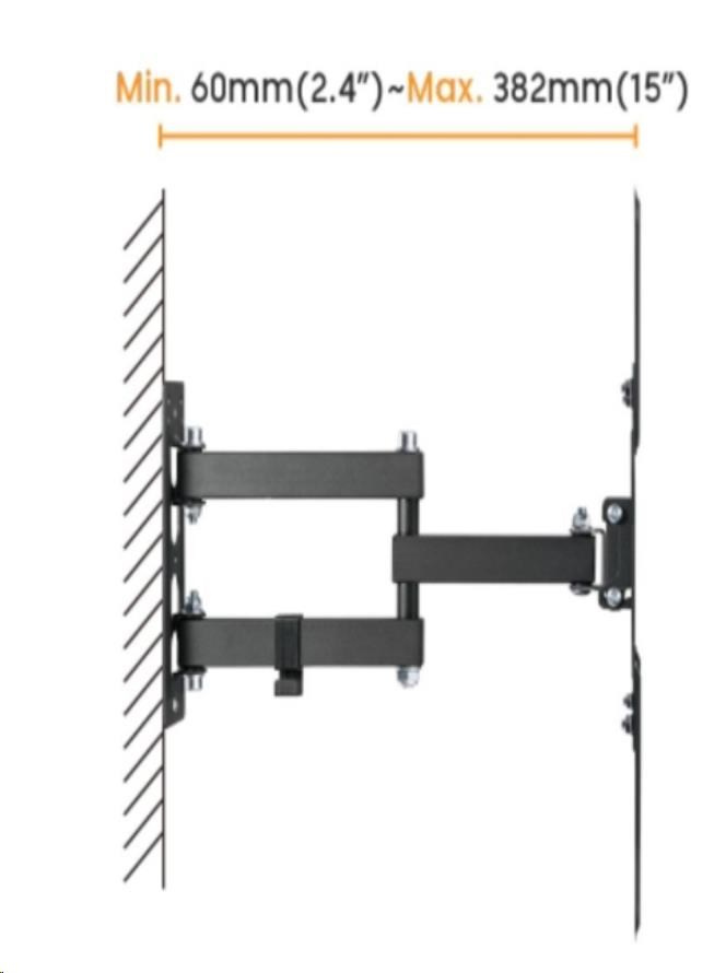 - Volně sklopitelná konstrukce pro jednoduchou změnu náklonu TV v úhlu +3°~-10°.