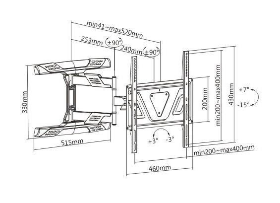 Výsuvný otočný sklopný držák Tv Fiber Mounts Super-1 Nástěnný držák vynikající kvality a parametrů na Tv 32-65", otáčení +/-90°, naklápění +7° / -15°, vzdálenost od zdi 41-520mm, VESA 200x100 až 400x400, nosnost 35kg Televizní držák SUPER-1 poskytuje opravdu širokou škálu polohovatelnosti - výsouvání od zdi 41mm až 520mm, otáčení na obě strany až +/- 90°, naklápění obrazovky +7° až -15°, korekci roviny +/- 3°. Konstrukce držáku je opláštěna krytkami s funkcí vedení kabeláže. Držák Fiber Mounts Super-1 je ideální na televize s úhlopříčkou 32" až 65", které mají hmotnost do 35kg a podporují VESA standardy od 200x100 do 400x400. Držák uspokojí i náročnější uživatele, kteří požadují nejen vynikající kvalitu ale i pěkný dizajn a snadné polohování. Držák je dodáván včetně instalačního materiálu. Záruka 5 let Držák na televize Fiber Mounts Super-1 Technické údaje: nosnost 35kg podporuje VESA standardy 200x100 až 400x400 ideální na televize s úhlopříčkou 32" až 65" výsuvný, nastavení vzdálenosti od zdi od 41mm až do 520mm otáčení na obě strany +/- 90° naklápění televize dolů až o -15° a nahoru až o +7° korekce roviny +/- 3° velký nástěnný úchyt pro bezpečné ukotvení dizajnové krytky pro vedení kabeláže velmi pevná a bezpečná konstrukce krásný vzhled barevné provedení černé záruka 5 let Držák na LCD LED Tv Fiber Mounts Super-1 Držák na televize Fiber Mounts Super-1 podporuje VESA standardy: VESA 200x100 VESA 200x200 VESA 300x200 a 200x300 VESA 300x300 VESA 400x200 a 200x400 VESA 400x300 a 300x400 VESA 400x400 Nástěnný držák na televize Fiber Mounts Super-1 je vhodný na všechny typy, značky i velikosti televizí, které mají hmotnost do 35kg a které podporují kterýkoliv z výše uvedených VESA standardů. Na velikosti (úhlopříčce) televize vůbec nezáleží. Držák na Tv Fiber Mounts Super-1 umožňuje otočení kolko ke zdi televizorům, které mají šířku maximálně 94cm nebo menší. Televize s větší šířkou otočíte o něco méně..