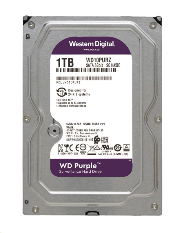 WD PURPLE WD11PURZ 1TB, SATA III 3.5", 64MB 5400RPM, 110MB/s, Low Noise, CMR