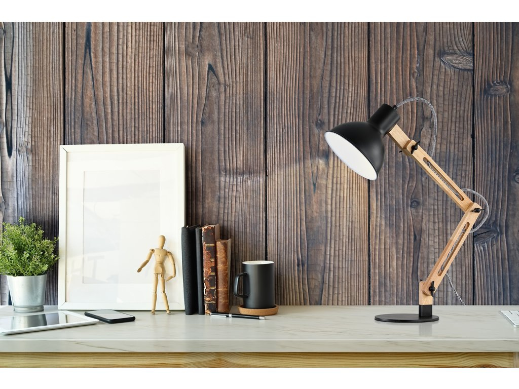 Stolní lampa Beauty & Wood zajistí vynikající světelné podmínky pro příjemnou a pohodlnou práci. Oceníte design ze dřeva a kovu, který vynikne v jakémkoli interiéru. Díky třem nastavitelným spojům lze světelný paprsek optimálně nastavit podle potřeb. Lampu zapnete a vypnete pomocí vestavěného vypínače kabelu. Lampa je vhodná pro žárovky s paticí E27 a třídou energetické účinnosti od A ++ do E, proto lze použít i velmi úsporné LED žárovky.