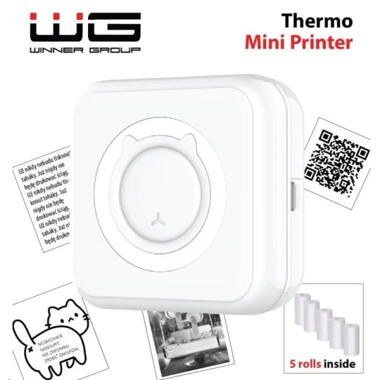 Praktická a stylová mini termotiskárna WG je ideálním nástrojem pro tisk poznámek, seznamů, kreativních obrázků nebo fotografií. Díky kompaktnímu designu a snadné obsluze se hodí na doma, do kanceláře i na cesty.