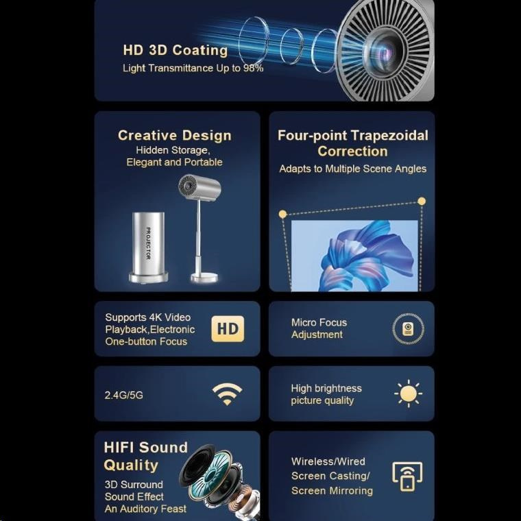 Stylový design ve stříbrném provedení a skvělý výkon dělají z tohoto projektoru ideálního parťáka pro zábavu i práci. Připravte se na velkolepé promítání, ať jste kdekoliv!