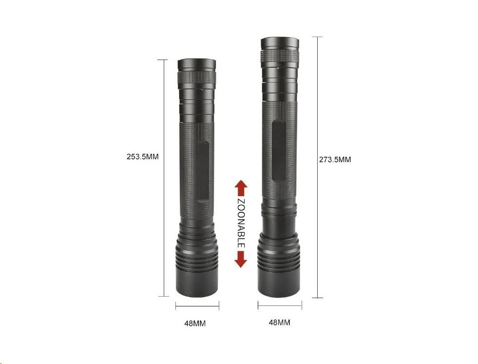 Funkce svícení: 3 úrovně světla (silné, střední, slabé), blikání, SOS.