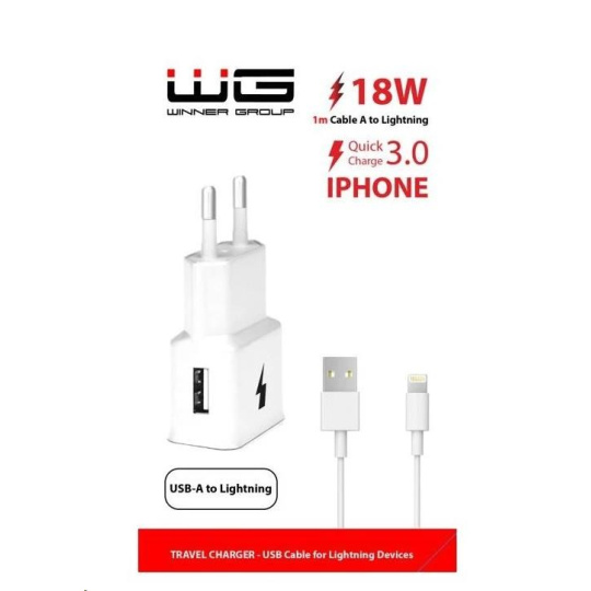 WG - Síťová nabíječka 1x USB-A, Quick Charge 3.0, 5V-9V-12V, kabel USB-A na Lightning, bílá
