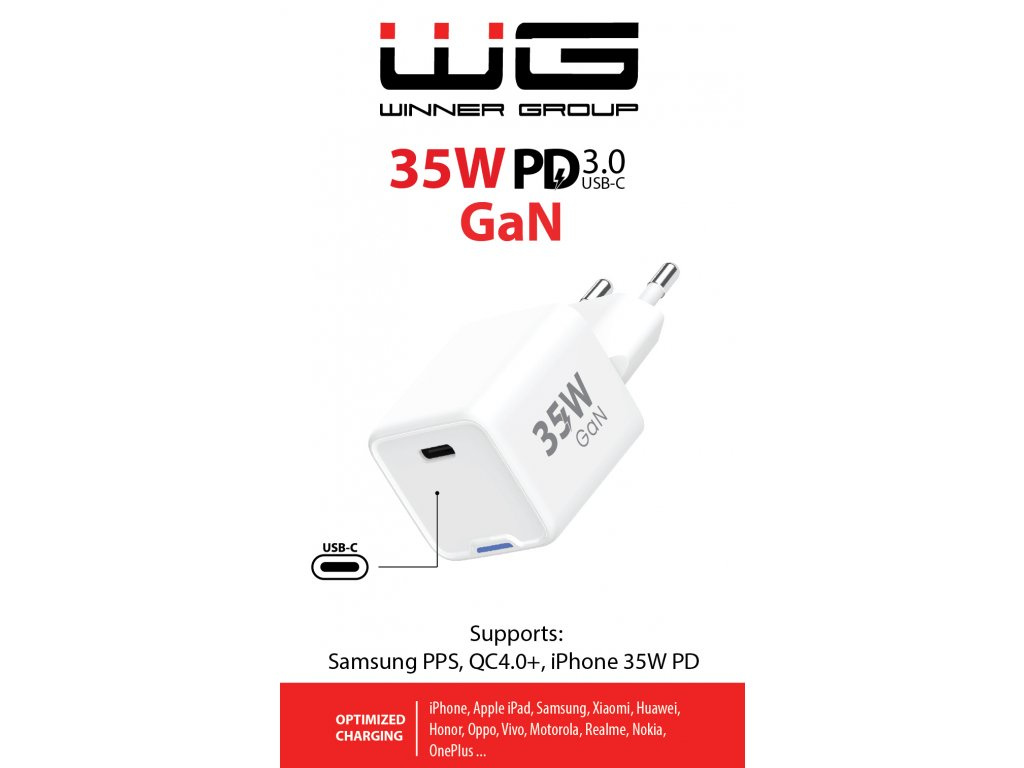 WG - Síťová nabíječka GaN 1x USB-C, PD 35W, bílá
