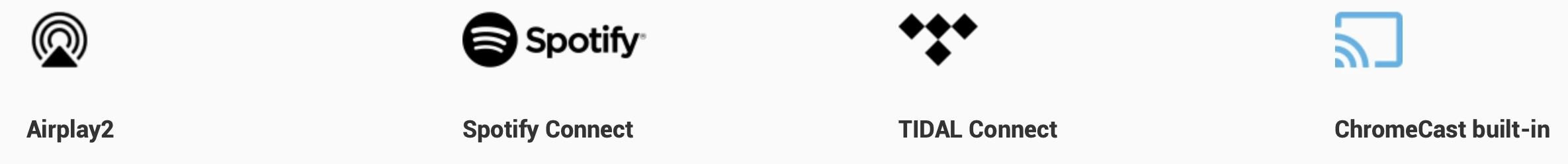 Pokud vám více vyhovuje audio streamování přímo z přehrávané aplikace, u WiiM Pro je přítomna podpora TIDAL Connect, AirPlay 2, Chromecast, Spotify Connect (Free i Premium).