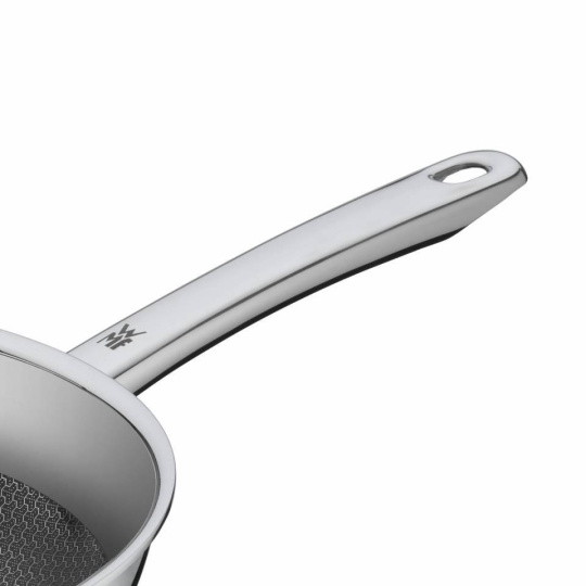 Řada WMF Profi Resist kombinuje ty nejlepší vlastnosti pánví z nerezové oceli a pánví s nepřilnavým povrchem. Pánve jsou vyrobené z třívrstvého materiálu - hliníkové jádro, vnitřní nerezová ocel a vnější extrémně odolná chromová ocel. Tento materiál rovnoměrně distribuuje teplo a je vhodný pro všechny typy varných desek, včetně indukčních. Nepřilnavý povrch PermaDur je chráněn vyvýšenou strukturou z nerezové oceli ve tvaru včelí plástve. Pánve řady Profi Resist jsou ideální pro vše, co chcete rychle a prudce opéct.