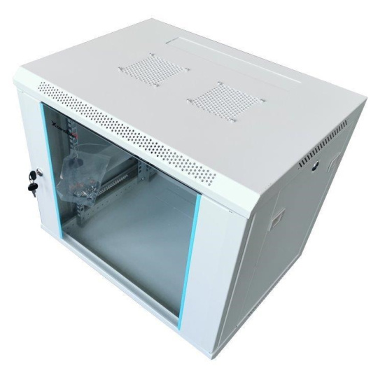 XtendLan 19" nástěnný rozvaděč 12U 600x450, nosnost 60 kg, skleněné dveře, svařovaný, šedý