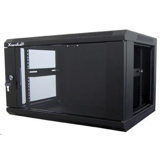 XtendLan 19" nástěnný rozvaděč 6U 600x450, nosnost 60 kg, skleněné kouřové dveře, rozložený, černý
