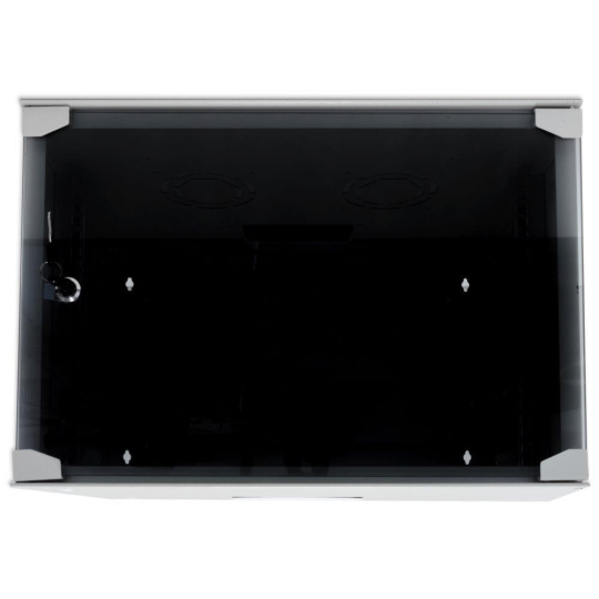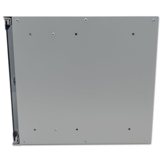 Univerzální jednodílný rozvaděč určený pro montáž na zeď (snadné připevnění - na hmoždinky). Vyroben je z válcované oceli, nosné části jsou z oceli tloušťky 1,5 mm (ostatní z 1,2 mm ocelového plechu). Konstrukce dovoluje statickou zátěž 35 kg. Přední dveře jsou skleněné, uzamykatelné. Boční panely nejsou odnímatelné. Dodává se s montážní sadou. Provedení: dveře - bezpečnostní sklo, zaměnitelný směr otevírání zádní kryt - plný boční kryt - plný horní kryt - perforovaný, s pozicemi pro dva ventilátory