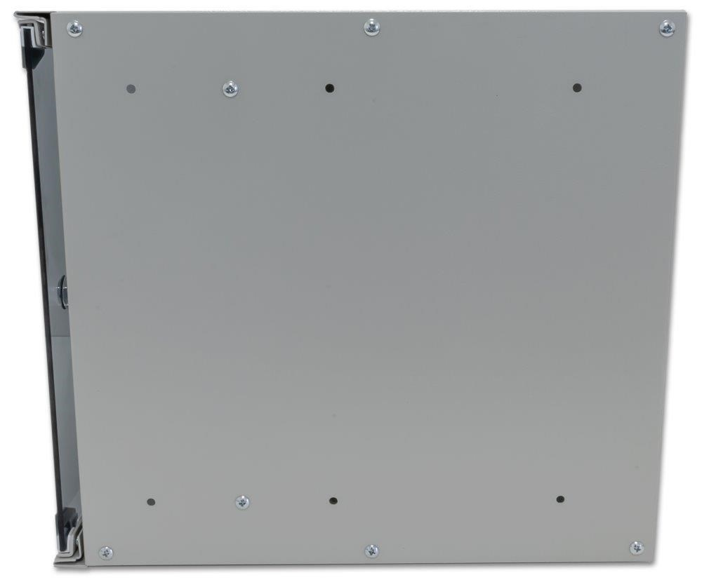 Univerzální jednodílný rozvaděč určený pro montáž na zeď (snadné připevnění - na hmoždinky). Vyroben je z válcované oceli, nosné části jsou z oceli tloušťky 1,5 mm (ostatní z 1,2 mm ocelového plechu). Konstrukce dovoluje statickou zátěž 35 kg. Přední dveře jsou skleněné, uzamykatelné. Boční panely nejsou odnímatelné. Dodává se s montážní sadou.