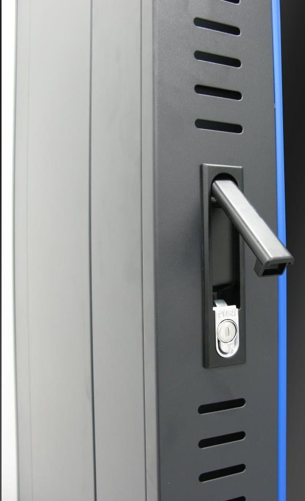 Uzamykatelné přední a zadní dveře, rukou uzavíratelné a volitelně uzamykatelné boční panely.
